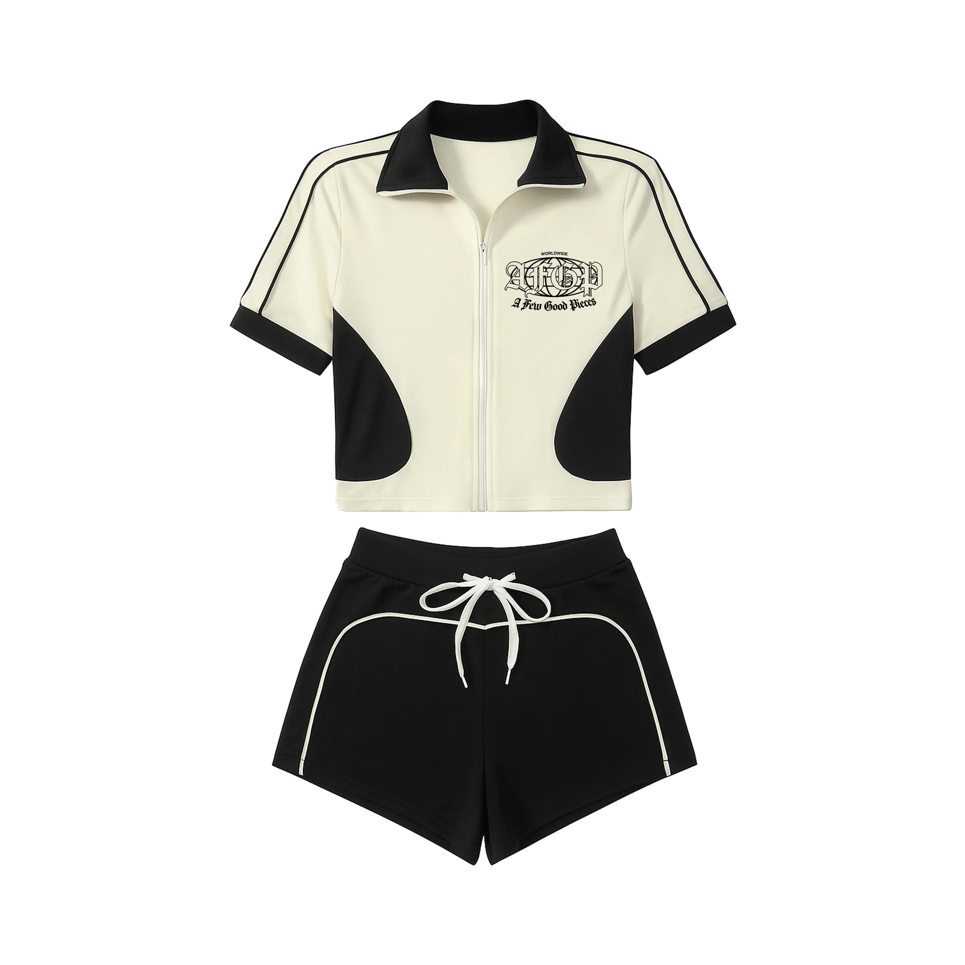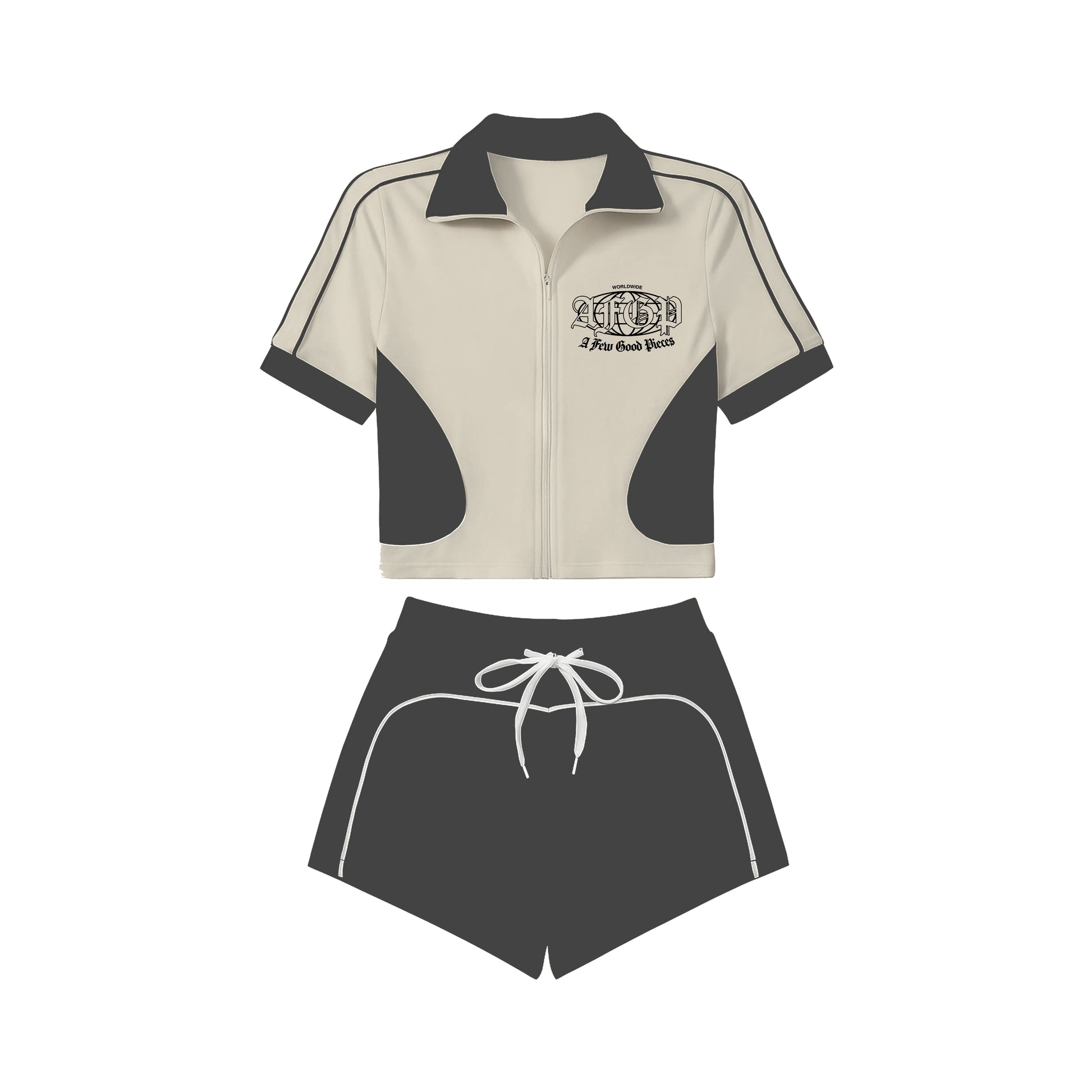 The AFGP “Motion Set” brings classic athletic design into the world of statement streetwear. This two-piece set includes a cropped zip-up top and matching high-waisted shorts, merging retro sportswear vibes with bold, modern contrast panels. The set features AFGP’s signature “Sacred Cipher” logo on the chest—an emblem of style, confidence, and movement.